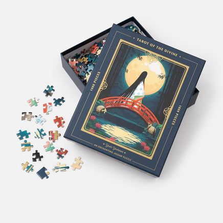 Tarot of the Divine Puzzle features Yoshi Yoshitani's striking representation of the Japanese fairy tale Princess Kaguya, representing themes of trickery, melancholy, and illusion. Connect 1000 sturdy, premium-quality puzzle pieces to complete this 20 x 27-inch work of art. This jigsaw will delight anyone looking to get offline and into a soothing groove.