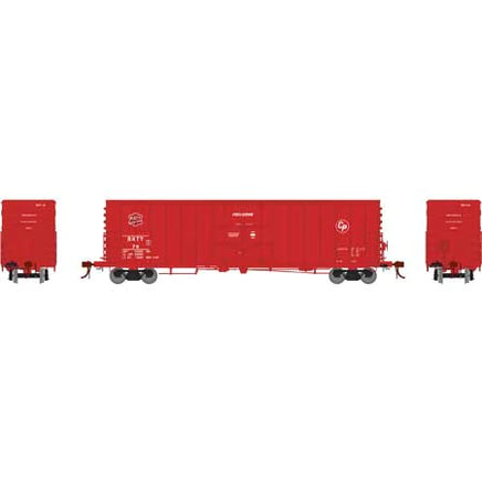 This is an Athearn G26799 HO Scale BKTY 50' PC&F Riveted Box with 10' 6 Door #79. Freight Car Features: Riveted or welded body per prototype, New road numbers and paint schemes, Fully detailed full cushion underframe, Separately applied door closure rods, side ladders, metal grab irons and etched metal end platforms, 70-Ton roller bearing trucks, Era: early 1960s to present, Minimum radius: 18” & Recommended radius: 22”. Genises Freight Car Features: Fully-assembled and ready-to-run out of the box, Accurately painted and printed for prototypical realism, Highly-detailed, injection-molded body, Separate wireform grab irons, etched metal coupler platforms, Coupler lift bars, trainline hoses, brake hoses, and hardware, Full underframe detail: air brake reservoir, control valve, and brake cylinder with plumbing and brake rod details, Trucks with animated rotating bearing caps, Machined metal wheels with RP25 contours operate on all popular brands of track, Weighted for trouble free operation, Body-mounted, McHenry operating scale knuckle couplers, Window packaging for easy viewing, plus interior plastic, blister safely holds the model for convenient storage, Replacement parts available & Multiple road numbers.