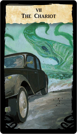 Find your future as told through Lovecraftian lore with the Cthulhu's Vault Tarot Deck and Guidebook. With 78 unique full-color artwork illustrated by fantasy artist Jacob Walker, this tarot deck, based on the popular Rider-Waite format, is the perfect addition for fans of tarot reading or horror fiction tales by H.P. Lovecraft. This premium tarot deck is printed on premium thick card stock and comes with a guidebook to lead you through the winding path of fate. The card back design features an outline of the most notable of the Great Old Ones, Cthulhu, with a spot gloss coat over a matte background that adds a dark style and flavor to your next tarot reading.