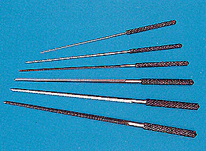 This handy reamer set finishes up when drills cannot deliver an exact size hole. Hobbyists and artisans use them for enlarging, shaping, cleaning, and cutting holes in metal, wood, plastic, or fiber. Assorted sizes available, from drill gauge 42 to 73. Ergonomic plastic handles are shaped for easy gripping. Sturdy vinyl storage pouch included.